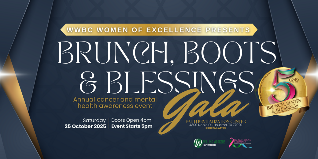 Please join us for our 5th Annual Brunch, Boots & Blessings Cancer & Mental Health Awareness Celebration. Mark your calendars for Saturday, October 25th. It will be held at Faith Revitalization Center 4300 Noble St. Houston,Tx. 77020. Doors open at 4pm.