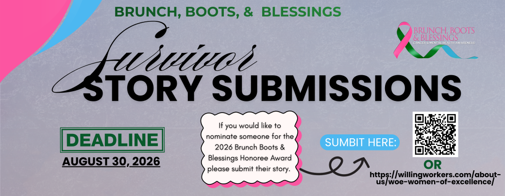 Please join us for our 6th Annual Brunch, Boots & Blessings Cancer & Mental Health Awareness Celebration. Mark your calendars for Saturday, October 24th. It will be held at Faith Revitalization Center 4300 Noble St. Houston,Tx. 77020.